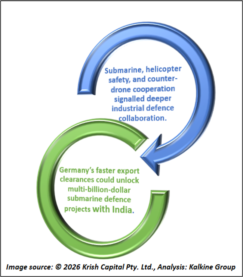 The leaders acknowledged ongoing cooperation in submarines, helicopter obstacle avoidance systems, and counter-unmanned aerial systems, signalling deeper industrial collaboration in sensitive defence areas. Germany’s intent to facilitate faster export clearances for defence equipment to India was seen as a key enabler for future deals, including potential multi-billion-dollar submarine-related projects.