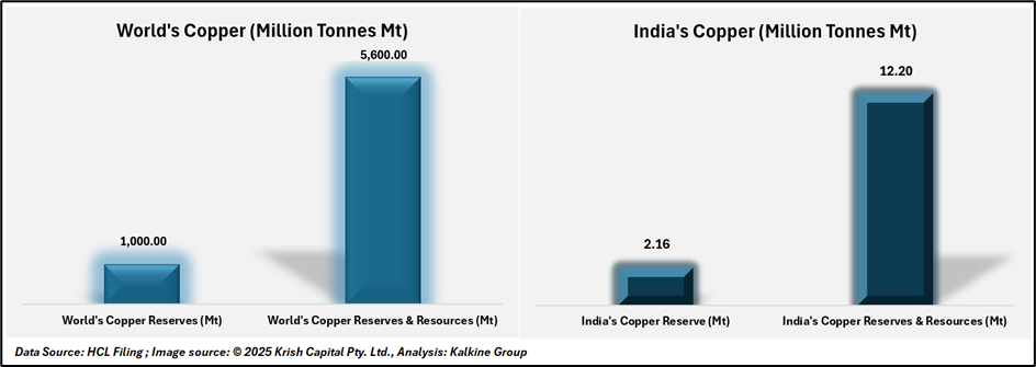 Despite the surge in demand, India’s domestic production and reserves remain modest. The country holds just 0.2% of global copper reserves, amounting to 2.16 million tonnes, and around 12.2 million tonnes of total resources a small fraction of global identified reserves of 1,000 Mt and total resources of 5,600 Mt.