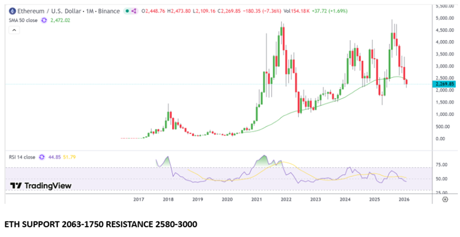 Bitcoin rose to $76,430.76 and Ether climbed to $2,270.45, although both remained lower over longer timeframes.