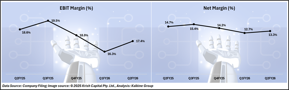 Net profit stood at ₹4,236 crore, nearly unchanged from ₹4,237 crore in the same quarter last year. Profit before tax (PBT) was ₹5,702 crore, reflecting disciplined cost management amid higher employee expenses. Operating expenses rose to ₹26,655 crore, primarily due to a rise in headcount-related costs, which climbed to ₹18,301 crore from ₹16,523 crore a year ago. Despite these pressures, HCL maintained a steady EBIT margin, supported by the ramp-up of large transformation deals and improved operational efficiency.