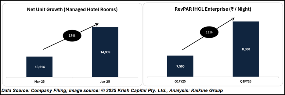 IHCL continues to expand through an asset-light strategy, reflected in a 17% YoY increase in management fees, and strengthening its diversified brandscape across the luxury, upscale, and lean-luxury segments.