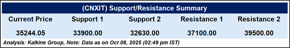 The Nifty IT index faces pressure from weak global demand and tariff concerns, leading to slower revenue growth and margin pressures. However, firms with diversified clients and strong digital capabilities may benefit from stabilization, while technical support near 33,900 offers potential buying opportunities for a gradual sector recovery in FY26.