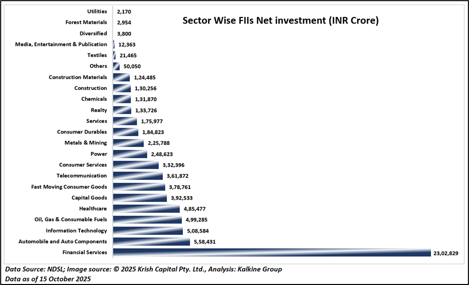 Foreign institutional investors (FIIs) remained consistent net buyers through October, providing strong liquidity support.