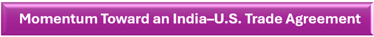 Negotiations between India and the U.S. appear to be nearing a breakthrough. The proposed deal may slash U.S. tariffs on Indian goods from 50% to around 15–16%, while India could gradually reduce Russian oil purchases, currently incurring a 25% penalty. Additionally, increased imports of genetically modified (GM) corn from the U.S. could lead to reciprocal tariff cuts on Indian exports.