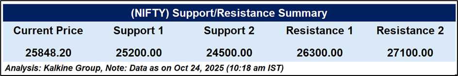 Indian equities remain firmly positioned in a structural uptrend, supported by trade optimism, robust FII inflows, and currency stability. Technical indicators reinforce bullish sentiment, with Nifty likely to extend gains above 25,500. Broader participation and improving global trade prospects continue to underpin India’s medium-term market outlook.