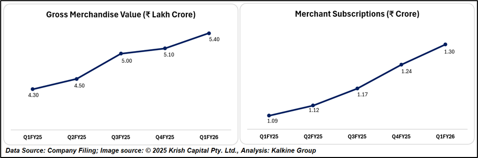 GMV rose 27% YoY to ₹5.39 lakh crore, while average monthly transacting users (MTUs) stood at 7.4 crore, reflecting sustained consumer engagement. Importantly, Paytm’s merchant monetization funnel has expanded, with stronger retention and increased cross-selling opportunities through loan distribution and value-added services.
