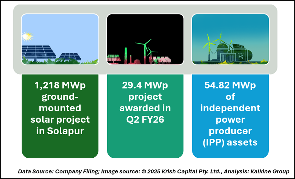 Waaree Renewable Technologies continued to strengthen its project portfolio during the quarter, securing multiple large-scale EPC orders. These include a 1,218 MWp ground-mounted solar project in Solapur, Maharashtra, and a 29.4 MWp project awarded in Q2 FY26. Earlier wins comprise 435 MWp, 131.6 MWp, and 255 MWp ground-mounted solar projects, along with a 40 MWh battery energy storage system, underscoring the company’s growing presence across the renewable value chain.