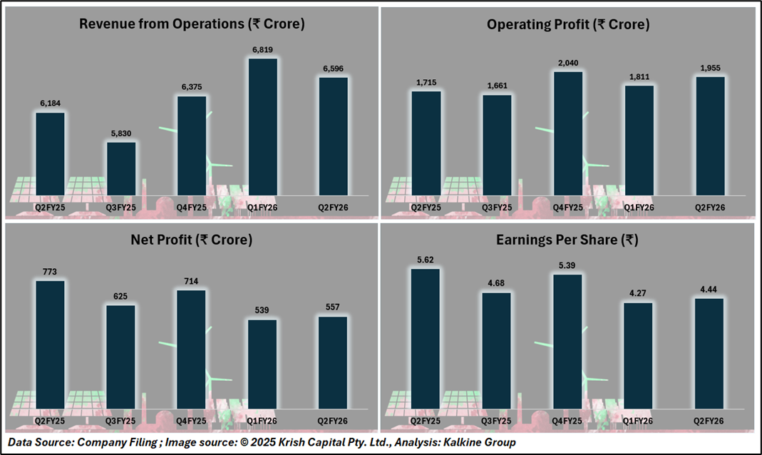 In Q2 FY26, AESL reported consolidated revenue from operations of ₹6,596 crore, an increase of 7% year-on-year compared to ₹6,184 crore in Q2 FY25. On a sequential basis, revenue declined 3.7% from ₹6,767 crore in the previous quarter.