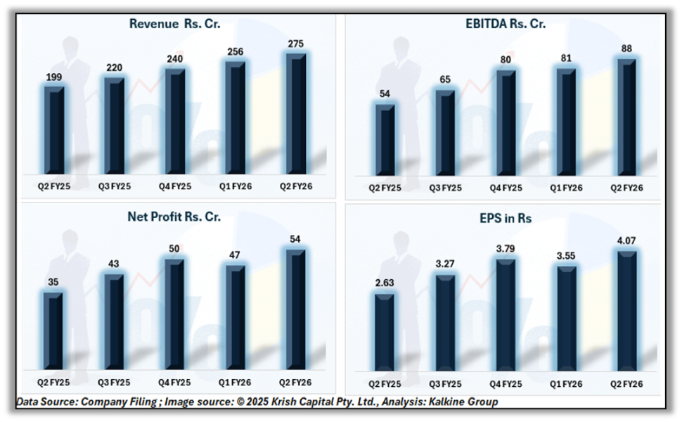 The company’s net profit rose to Rs 54 Cr, reflecting a 55% YoY jump and translating into an EPS of Rs 4.07. The company’s second-quarter performance reflected steady operational efficiency and continued growth across key business segments.
