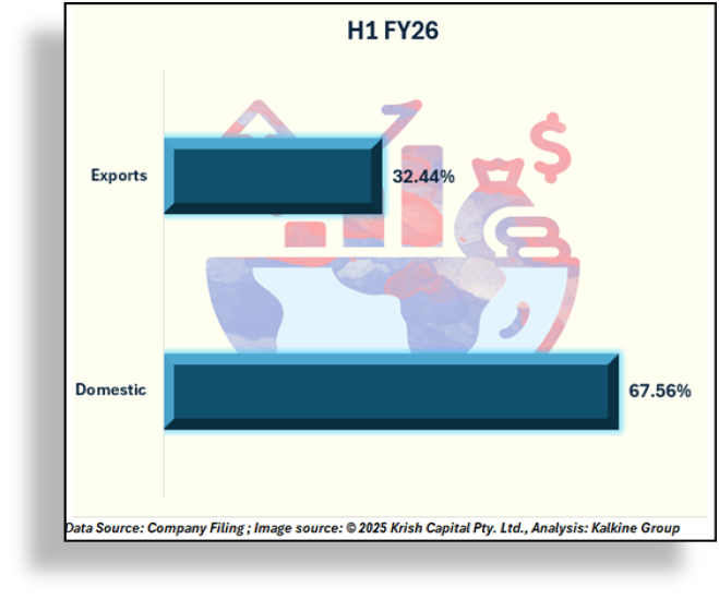 Domestic operations remained the primary revenue driver, contributing 67.56% of H1 FY26 revenue, while exports accounted for 32.44%. Within business lines, CEM contributed 42.56%, CRAMS 9.46%, and other services 1.60%, reflecting a focused strategy to leverage both domestic and international demand.