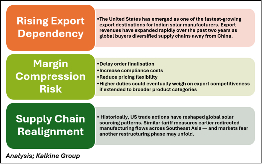 Most Indian module manufacturers currently follow an import-cell, assemble-module model for exports, particularly to the US. As a result, immediate operational disruption may remain limited for several players.