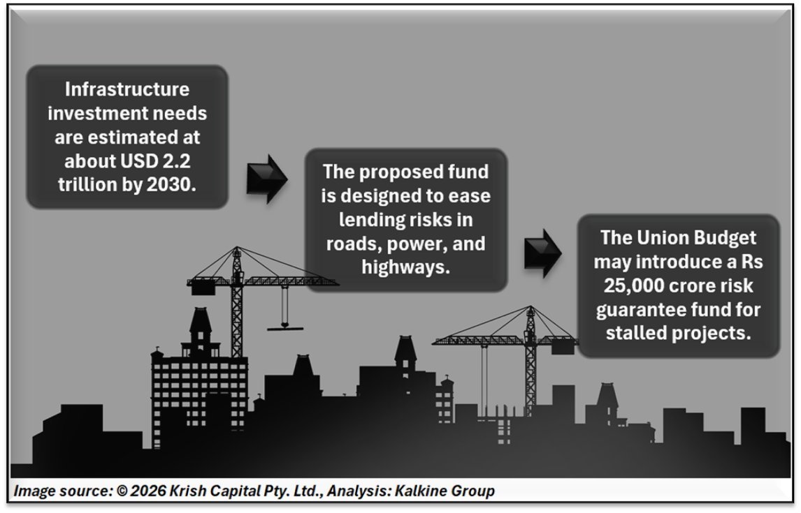 The proposed ₹25,000 crore fund is expected to function as a risk guarantee mechanism. Under this structure, the government would provide partial protection to lenders if projects encounter financial or execution difficulties. The concept was recommended by a committee under the National Bank for Financing Infrastructure and Development. The National Credit Guarantee Trustee Company is expected to manage the scheme, following credit guarantee frameworks already used in other segments.