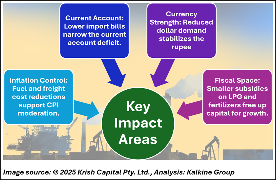 For India, one of the world's largest crude oil importers, the timing couldn’t be better. With over 85% import dependence on crude oil, primarily sourced from the Middle East, a price correction translates into immediate macroeconomic relief.