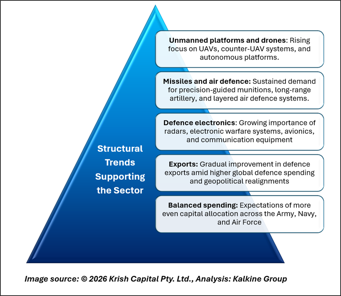 While Budget Day may act as a short-term catalyst, the medium-term investment narrative continues to hinge on indigenisation, modern warfare requirements, and export-led growth.