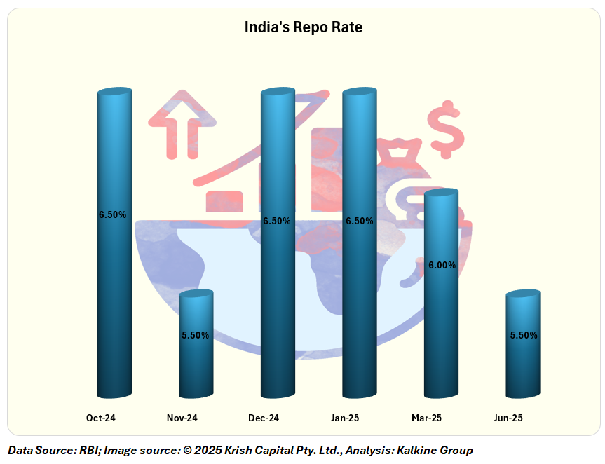 Amid rising uncertainties, the RBI has adopted a more neutral stance. Following a rate cut from 6.50% to 5.50% earlier this year, the central bank signaled a pause in its easing cycle during the June 6 meeting.