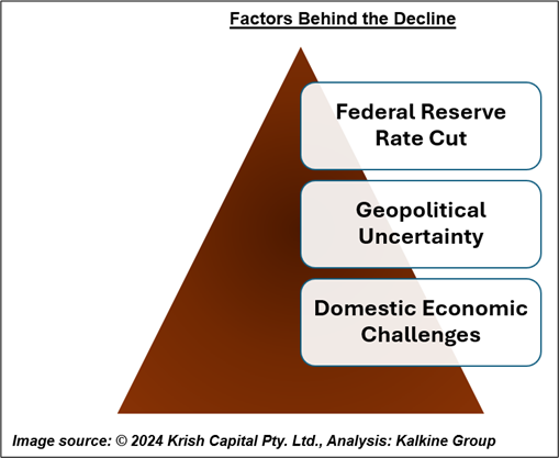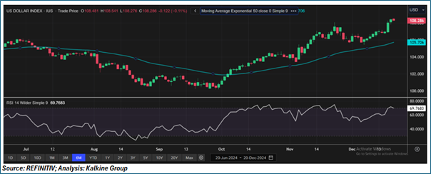 The Federal Reserve’s recent 0.25% rate cut has created ripples across global markets. Although the Fed is expected to maintain rates at their current levels in January, its stance has bolstered the US dollar index, which measures the dollar’s performance against a basket of six major currencies. The Dollar index climbed to 108.44 on December 19, indicating a stronger dollar that has added pressure on emerging market currencies, including the rupee. Additionally, the yield on the US 10-year Treasury bond rose to 4.56% on the same day, further tightening financial conditions for global markets.