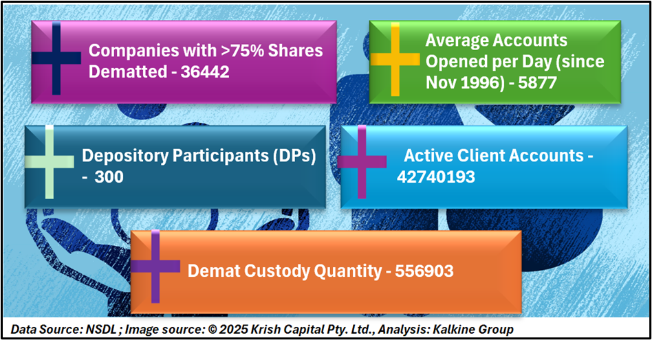 India’s capital market infrastructure is entering a strong growth phase, supported by rising retail participation, increasing market volumes, and a rapidly expanding young investor base, as highlighted by the Jefferies report. The sharp rise in demat accounts and mutual fund assets under management reflects growing trust in formal financial markets. At the same time, NSDL’s wide reach, large custody base, and successful shift to a fully digital system underline the strength of India’s market infrastructure.