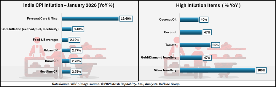 Retail inflation has eased under the revised CPI series, with January inflation at 2.75% year-on-year. Food inflation remains contained, providing additional comfort to policymakers. This has enabled the Reserve Bank of India to maintain the repo rate at 5.25% while retaining a neutral policy stance.