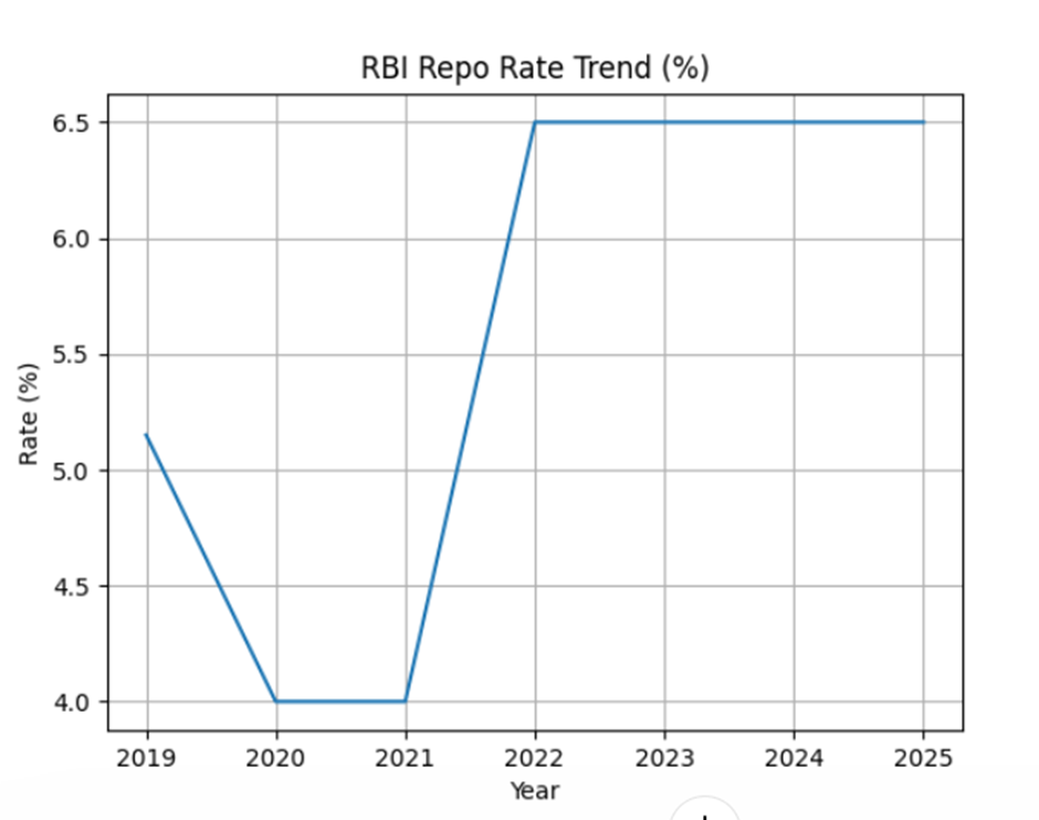 Monetary policy has been central to anchoring inflation expectations. The Reserve Bank of India has adopted a calibrated approach, raising the repo rate from pandemic lows of 4% to approximately 6.5%, where it has remained stable.