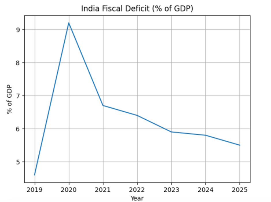 Fiscal policy has played a critical role in sustaining this growth trajectory while maintaining macro stability. India’s fiscal deficit, which expanded significantly during the pandemic, has been gradually consolidated.