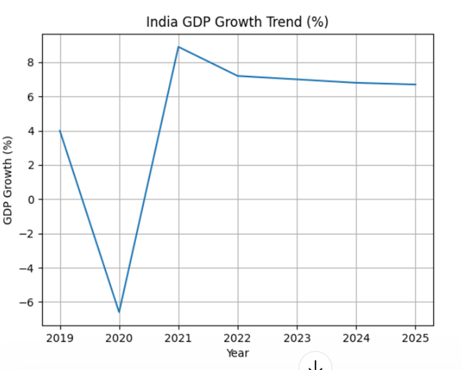Growth dynamics further reinforce India’s macro positioning. GDP growth has stabilised in the range of 6.5–7%, making India one of the fastest-growing major economies globally.