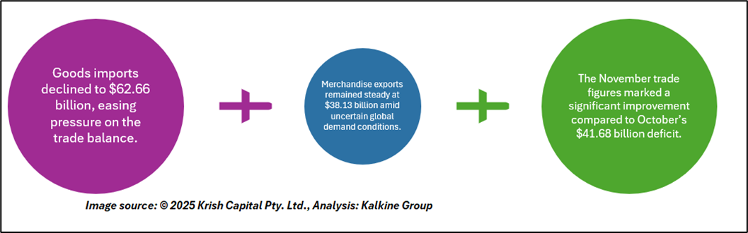 The primary driver behind the narrowing trade deficit was a notable decline in imports. Goods imports fell to $62.66 billion in November, easing pressure on the trade balance. Lower import volumes across key commodities helped bring down the overall import bill, providing immediate relief to the merchandise account.