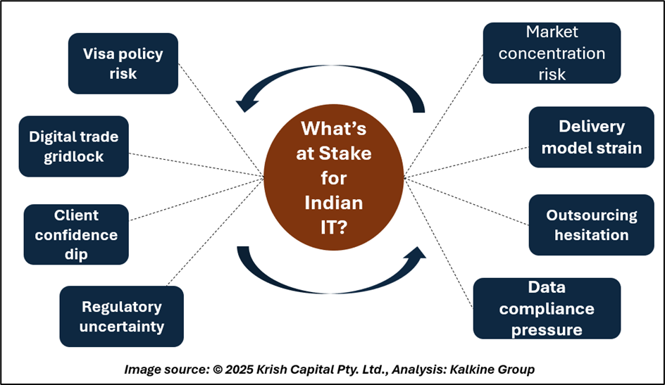 In response to the growing geopolitical and regulatory risk, Indian IT firms are proactively diversifying their delivery hubs and expanding partnerships in Europe and the Asia-Pacific. There is also a strong shift towards non-linear revenue models such as platform offerings and enterprise AI. However, with over half of their earnings tied to the US, firms cannot afford a sustained chill. Many are now investing in enhanced geopolitical risk assessment, scenario planning, and strengthening local US talent pipelines to mitigate exposure.