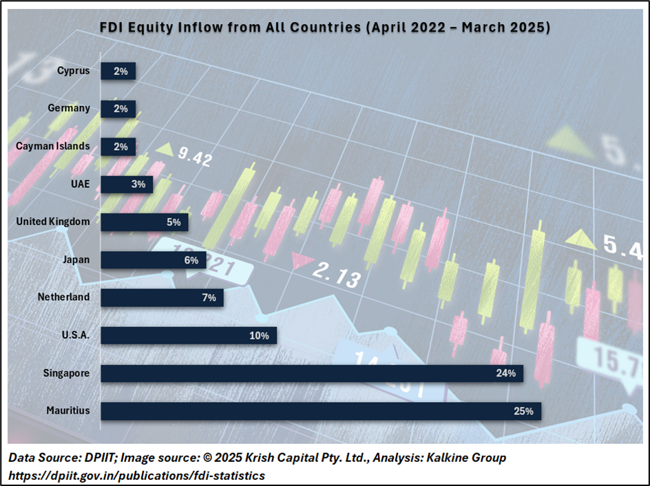 On a sectoral basis, manufacturing, financial services, and computer services attracted the highest FDI inflows. This suggests that while overall investor sentiment has weakened, interest in core service and industrial sectors remains intact.