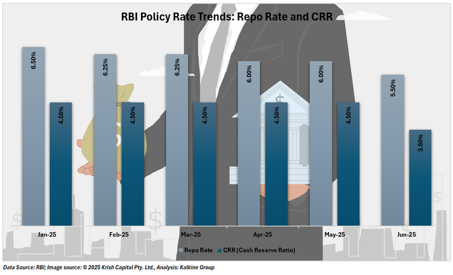 The Reserve Bank of India has also decided to cut the Cash Reserve rate (CRR) by 100 base points, reducing it from 4.5% to 3.5%. This reduction will be executed in four equal stages starting on September 6, 2025.