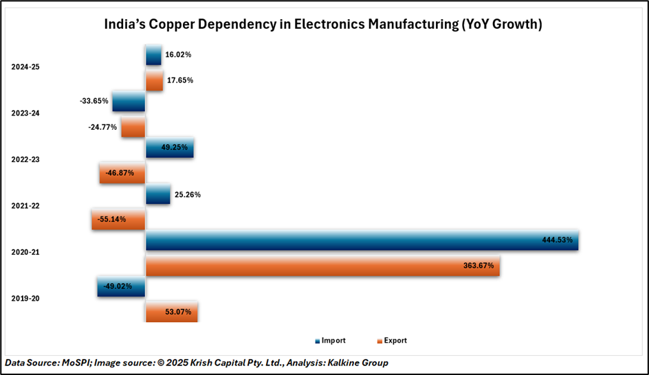 According to trade data, India exported about USD 2 billion in copper and copper products in FY2024–25, with USD 360 million going to the U.S. The American market is India’s third-largest copper export destination, following Saudi Arabia and China. While some decline in U.S. demand could be absorbed locally, the broader concern remains the impact on inbound copper shipments required for high-tech manufacturing.