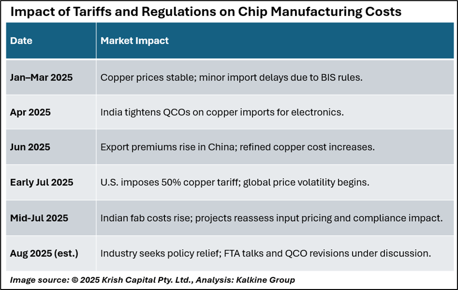 India’s nascent semiconductor industry is particularly sensitive to changes in input costs and regulatory delays. The cost of establishing chip fabrication units (fabs) runs into billions of dollars, with profit margins highly dependent on stable raw material pricing. The new U.S. tariffs, combined with India’s own import regulations like Bureau of Indian Standards (BIS) certifications and Quality Control Orders (QCOs), are compounding industry anxieties. Economists, emphasise that India’s chip strategy must prioritise resilient, cost-efficient copper supply chains alongside fab subsidies.