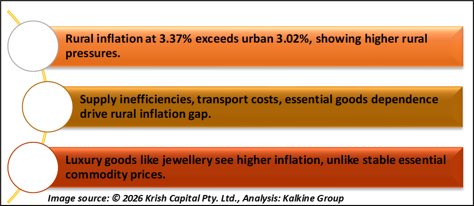 Despite this, inflation trends differ between rural and urban regions. Rural inflation was recorded at 3.37%, higher than urban inflation at 3.02%. This gap suggests that rural consumers continue to face relatively higher price pressures. Factors such as supply chain inefficiencies, transportation costs, and dependence on essential goods may be contributing to this difference.
