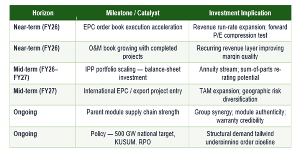 Management signals and group strategy suggest continued expansion both domestically and selectively in export markets, alongside a growing in-house IPP portfolio that would give WRTL a stream of annuity-like cash flows to complement the lumpier EPC revenues. If the IPP portfolio scales and is carried at book value, there is potential for sum-of-the-parts re-rating.