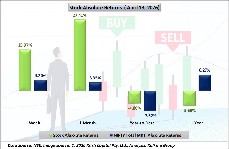 Shares of Enviro Infra Engineers surged 12.01% to ₹193.94 on April 13, 2026, positioning the stock among the top gainers of the day. The rally was driven by the company’s announcement of receiving two Letters of Empanelment (LoEs) for infrastructure projects in Maharashtra. During the session, the stock traded within a range of ₹185.31 to ₹198.90, with a VWAP of ₹194.69, indicating strong intraday buying interest and positive momentum.