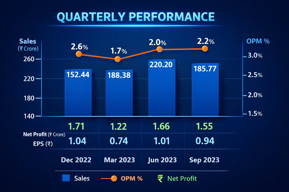 The December 2025 quarterly profit of ₹1.91 Cr — the most recent reported figure — represents a 94.90% year-on-year increase from ₹0.98 Cr in December 2024. This growth rate sounds impressive until the absolute numbers are considered: the business earned ₹1.91 Cr in a quarter on ₹224 Cr of sales. Expressed differently, for every ₹100 of steel Mahamaya sold in December 2025, it kept less than ₹0.86 as net profit.