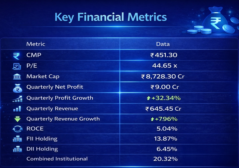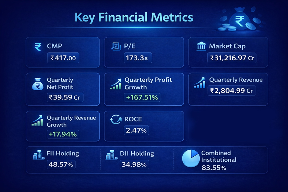 At first glance, the current metrics are not compelling. A 105.84x P/E on modest quarterly earnings, declining revenue of -1.07%, and ROCE of 4.48% represent a stock whose current earnings power does not justify its valuation by conventional standards. Institutional investors holding 15.24% combined are clearly not buying the current P&L.