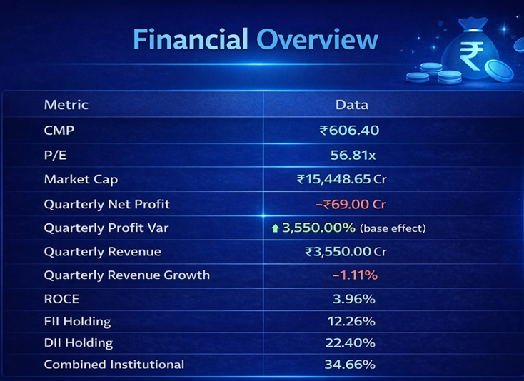 Tata Chemicals presents the most analytically nuanced case in this screen. On current reported metrics — a quarterly net loss of ₹69 Cr, ROCE of 3.96%, and declining revenue — the company does not fit the conventional institutional quality template. Yet 34.66% of the company is held by sophisticated FII and DII investors. Understanding why requires looking past the near-term P&L.