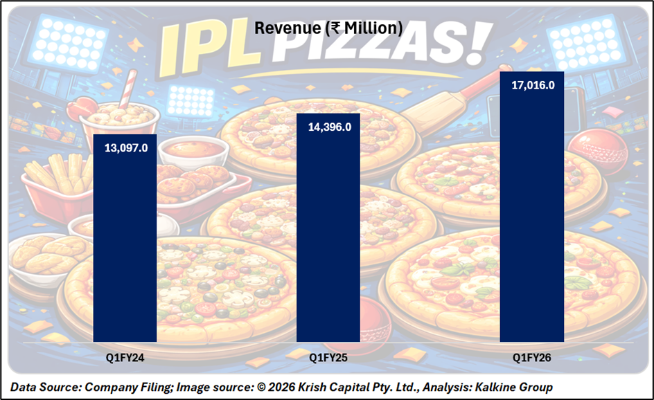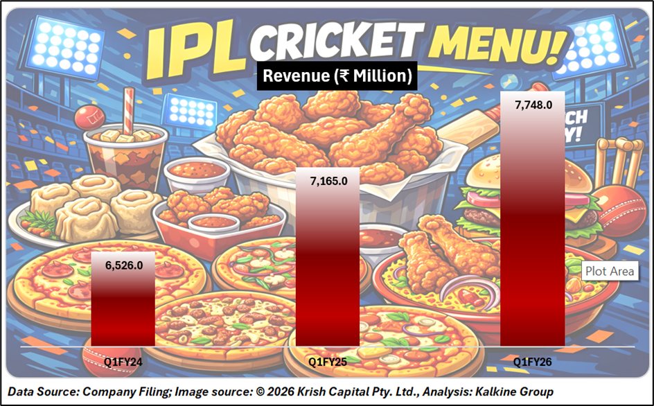 Overall, India’s organised QSR market continues to expand, supported by store rollout across Tier II and Tier III cities and rising delivery penetration. During IPL periods, extended evening match schedules typically strengthen peak-order volumes, benefiting listed QSR operators with strong delivery infrastructure and nationwide networks.