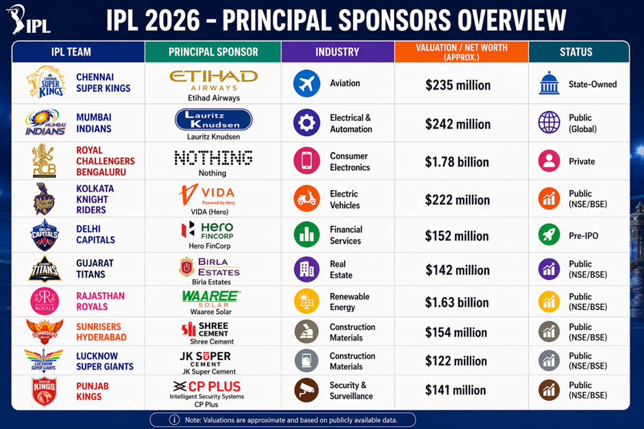 IPL 2026 sponsorship trends highlight the growing convergence between sports branding and capital markets. With multiple listed companies and emerging IPO candidates involved, jersey sponsorships increasingly reflect India's economic priorities across infrastructure, renewable energy, and mobility. For investors, tracking sponsor activity offers valuable insights into sector momentum and brand-led growth strategies.