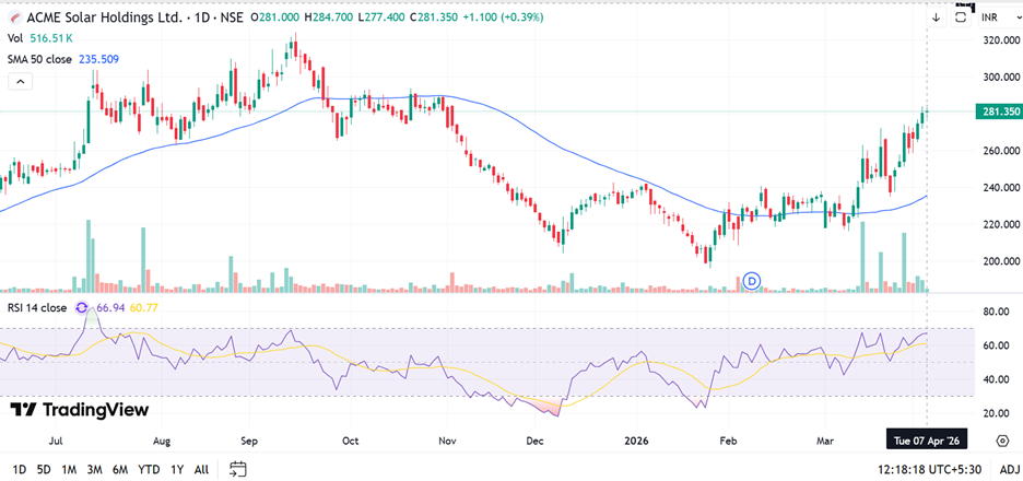 The stock is trading around ₹266–275 in early April 2026. Support sits at ₹250–255, a zone that has attracted buying interest during recent pullbacks. Resistance is at ₹280–290, with ₹320 and above becoming relevant only on sustained positive momentum. The technical structure looks like a growth stock in consolidation constructive, not broken, with positive commissioning newsflow acting as repeated near-term catalysts.