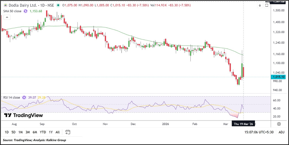 Despite the current correction, the long-term outlook for Dodla Dairy remains supported by stable demand in the dairy sector. Growth is expected to be driven by consumption trends and expansion into value-added products. However, short-term performance may continue to be influenced by input cost volatility and valuation adjustments in the market.