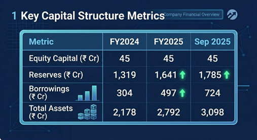 Borrowings rising from ₹304 Cr to ₹724 Cr (Sep 2025) |