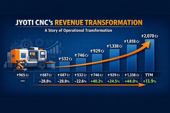 Jyoti CNC's revenue trajectory over the past several years tells the story of a company that has undergone a genuine operational transformation.