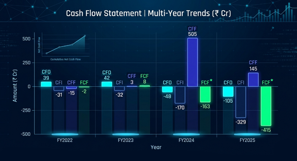 FCF of -₹415 Cr in FY2025 despite strong reported profits |