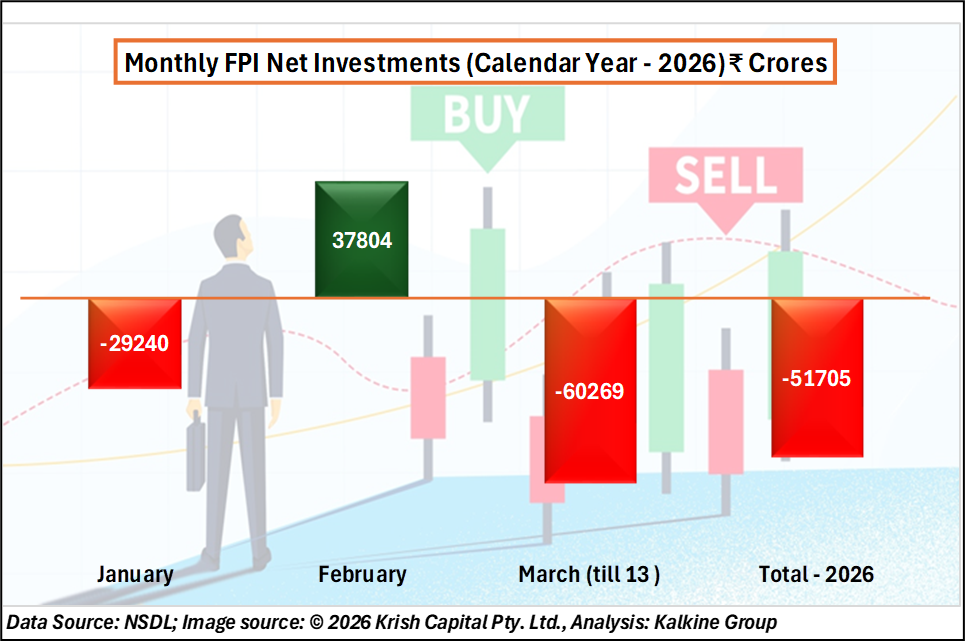 Foreign Portfolio Investors (FPIs) have added to the rupee’s decline. In January, FPIs were net sellers in equities, pulling out ₹35,962 crores. While February saw a temporary recovery with inflows of ₹22,615 crores, March witnessed massive equity outflows of ₹52,704 crores. Overall, cumulative FPI withdrawals in 2026 have reached ₹51,705 crores. This volatile sentiment is fueling pressure not only on the rupee but also on domestic equity markets, as investors move toward safer assets.