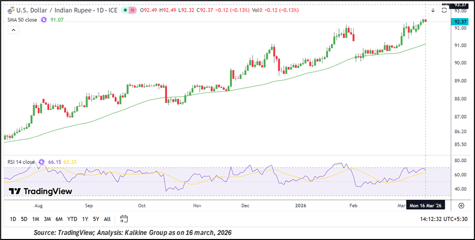 The Indian rupee faces continued pressure amid rising global oil prices and persistent FPI outflows. Domestic markets remain cautious, with technical indicators signaling oversold conditions. While support near ₹91–₹90 could offer temporary relief, any escalation in geopolitical tensions or further foreign withdrawals may push the currency lower, keeping volatility high and market sentiment fragile in the near term.