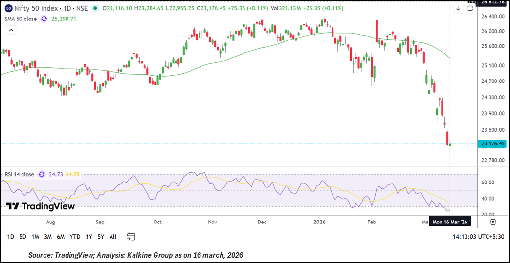 Indian stock markets have mirrored the currency’s stress. The Nifty 50 index is trading below its 50-day moving average of 25,298.71, following a pattern of lower highs and lower lows. Technical indicators, such as the 14-day Relative Strength Index (RSI) at 24.73, suggest oversold conditions, highlighting ongoing market weakness. Analysts identify short-term support for Nifty around 22,800–22,200, while resistance may appear between 24,200–24,800.