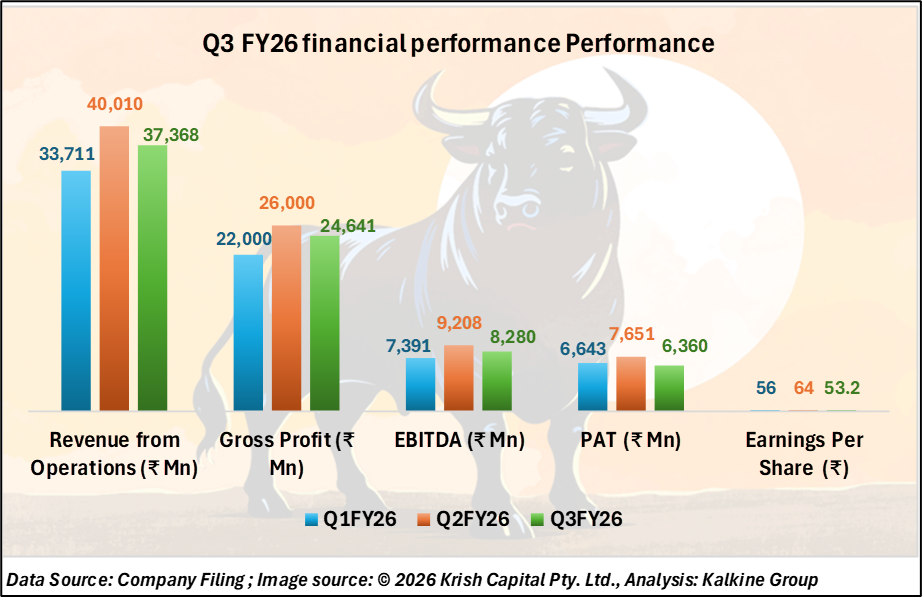 Alkem Laboratories’ Q3 FY26 performance provides a strong backdrop for its global expansion. The company reported total revenue of ₹37,368 million, a 10.7% year-on-year (YoY) increase. Domestic sales contributed ₹24,959 million, growing 5.5% YoY, while international sales surged 26.6% to ₹12,157 million, driven by the US market (₹7,533 million, +18.8%) and non-US international markets (₹4,624 million, +41.6%).