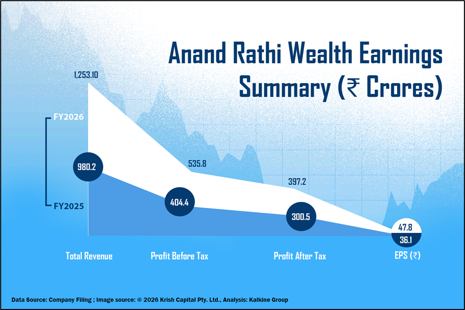 Anand Rathi Wealth (NSE:ANANDRATHI) reported consolidated Profit After Tax (PAT) of INR 386 crore for FY26, marking a 28% year-on-year increase. Total revenue for the year stood at INR 1,198 crore, reflecting a 22% YoY growth.