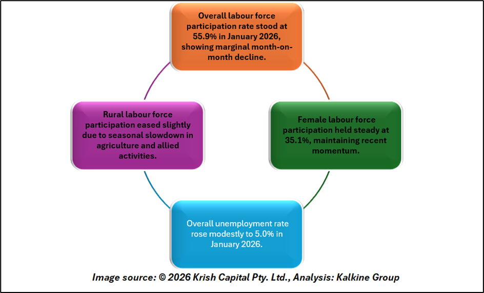 Overall, India’s labour market performance in January reflects seasonal adjustment rather than deterioration, with participation and employment indicators maintaining a broadly stable trend as the year begins.